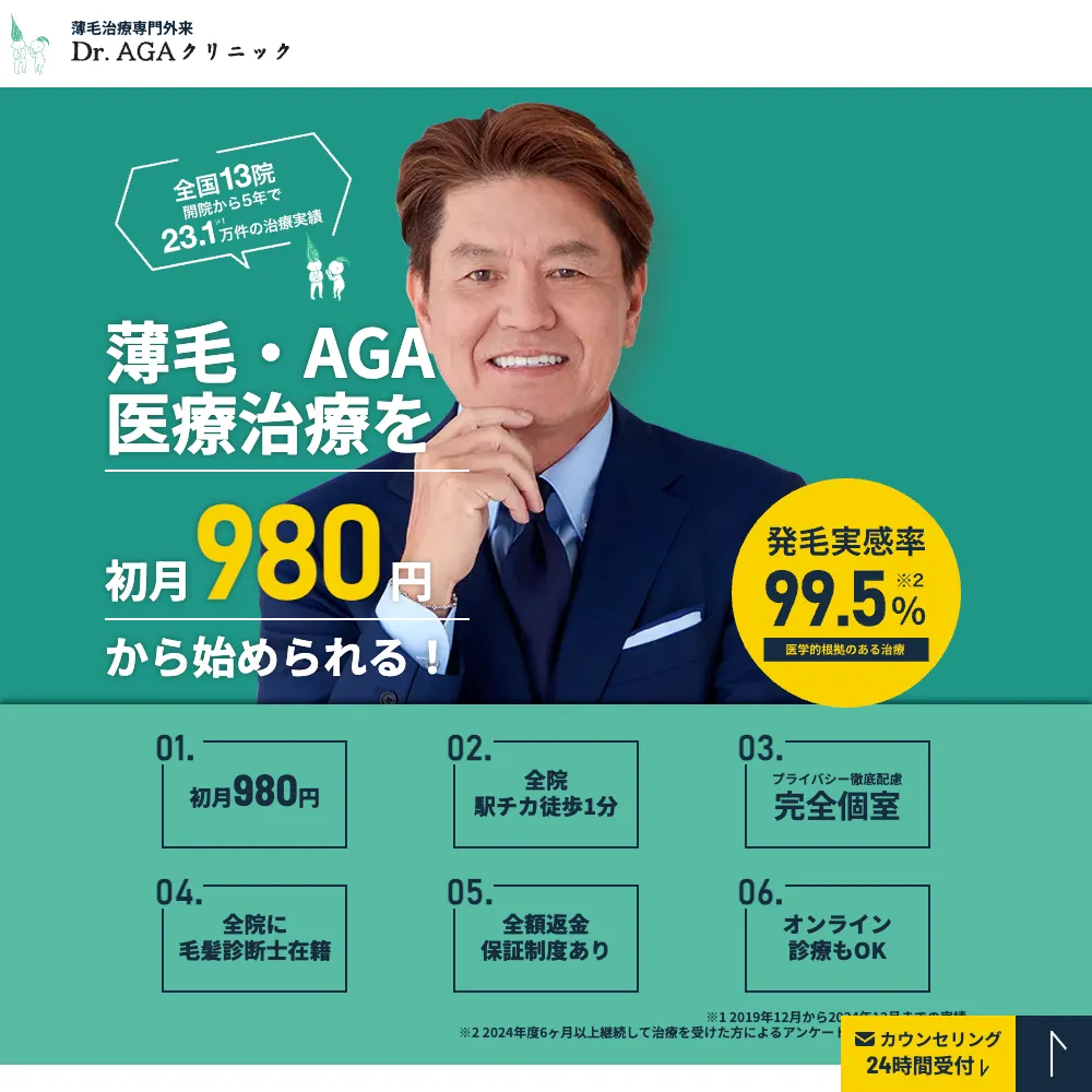 全国に42院を展開するAGAクリニック!駅前でアクセスしやすいから仕事帰りにも◎